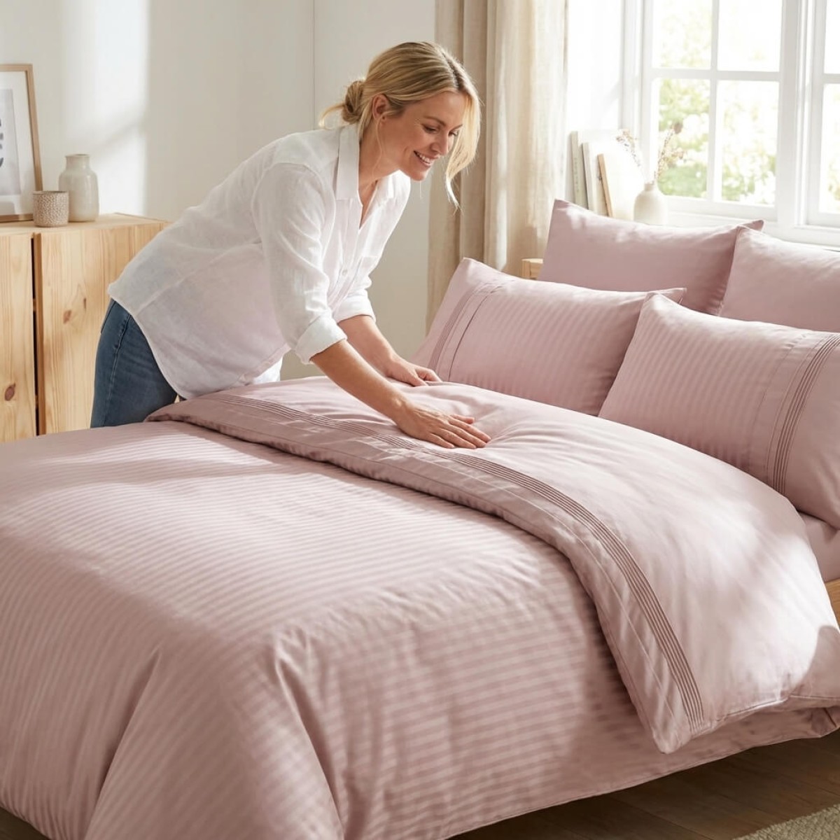 Създадена с внимание към детайла, тази материя предлага луксозно усещане и невероятна издръжливост. Тя осигурява мекота и комфорт при допир, като същевременно остава устойчива на интензивна употреба. Благодарение на модерните техники на изработка, чаршафите не губят форма, свежест и цвят дори след стотици пранета, а усещането върху кожата остава деликатно и приятно.