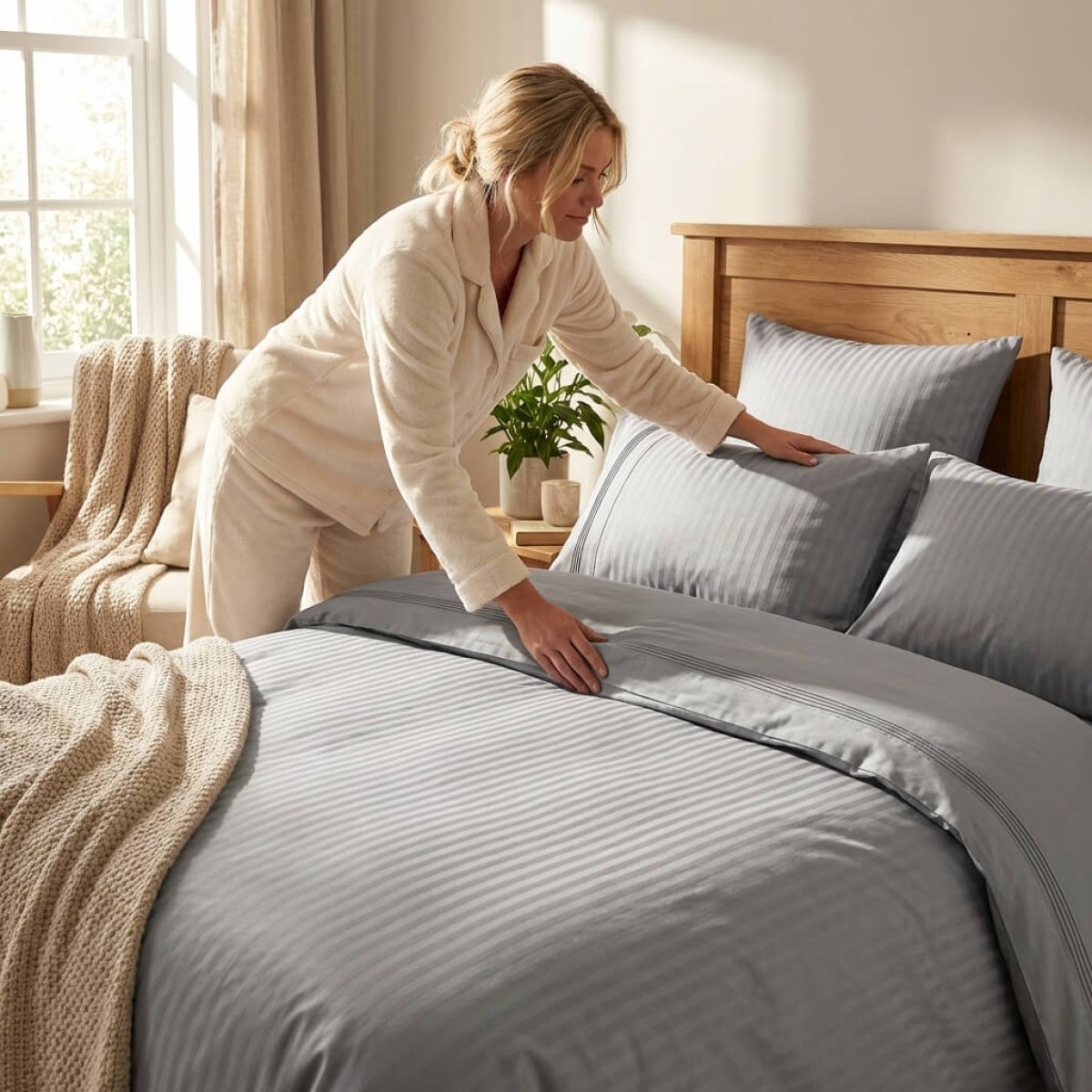 Създадена с внимание към детайла, тази материя предлага луксозно усещане и невероятна издръжливост. Тя осигурява мекота и комфорт при допир, като същевременно остава устойчива на интензивна употреба. Благодарение на модерните техники на изработка, чаршафите не губят форма, свежест и цвят дори след стотици пранета, а усещането върху кожата остава деликатно и приятно.