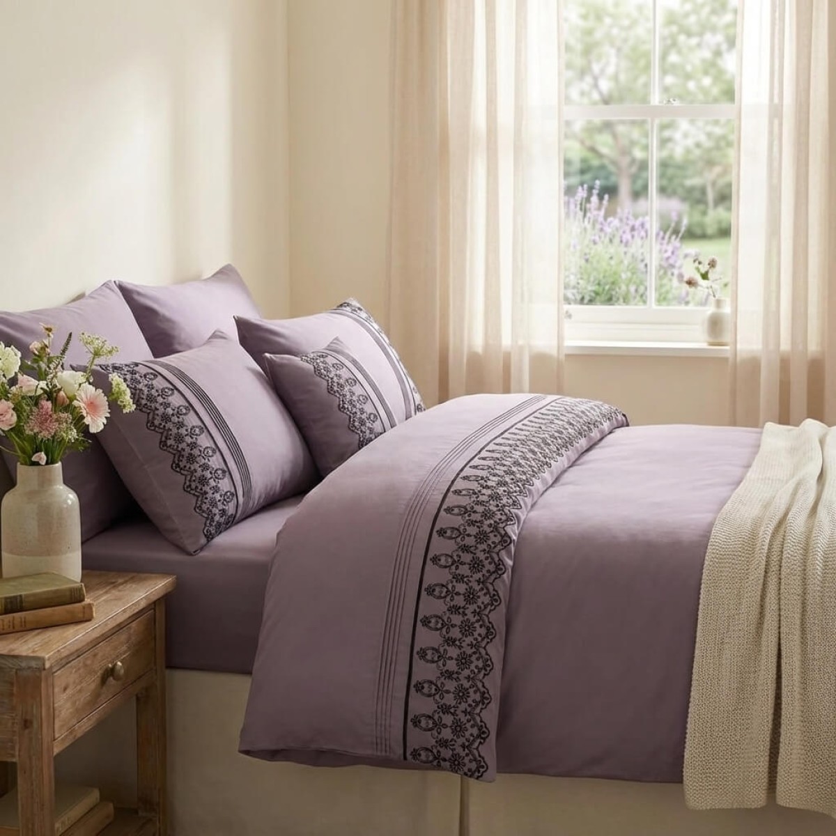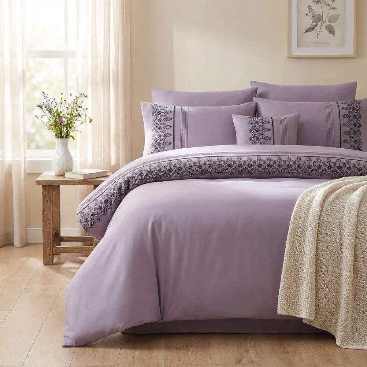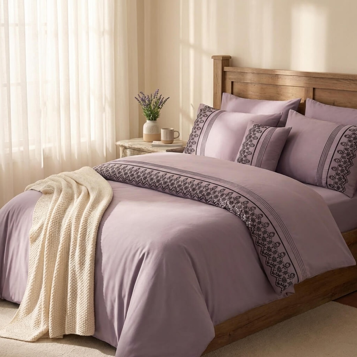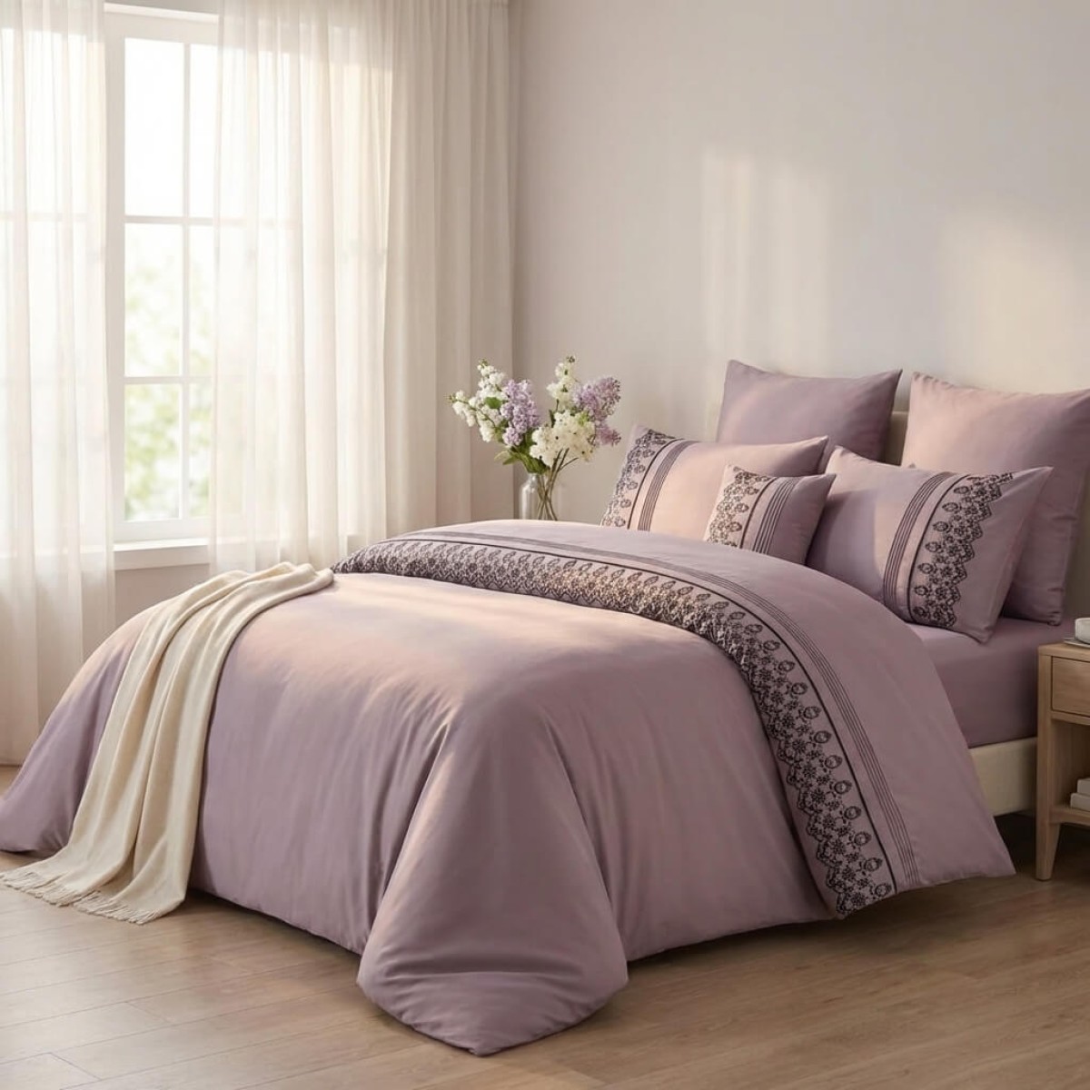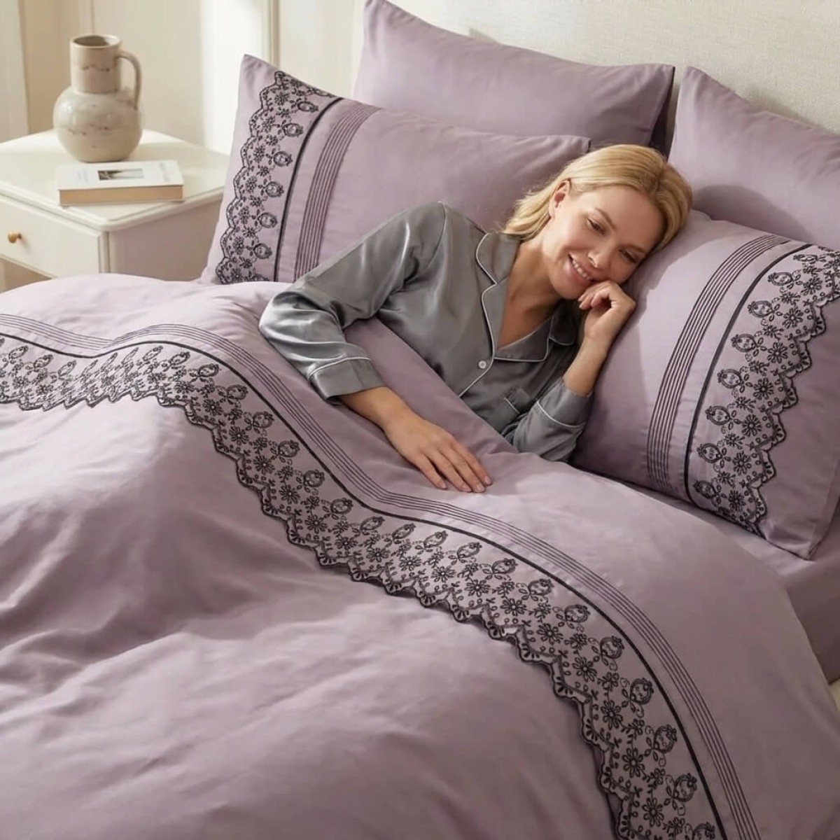 Луксозен спален комплект от ВИП памучен сатен, Мона - Лила