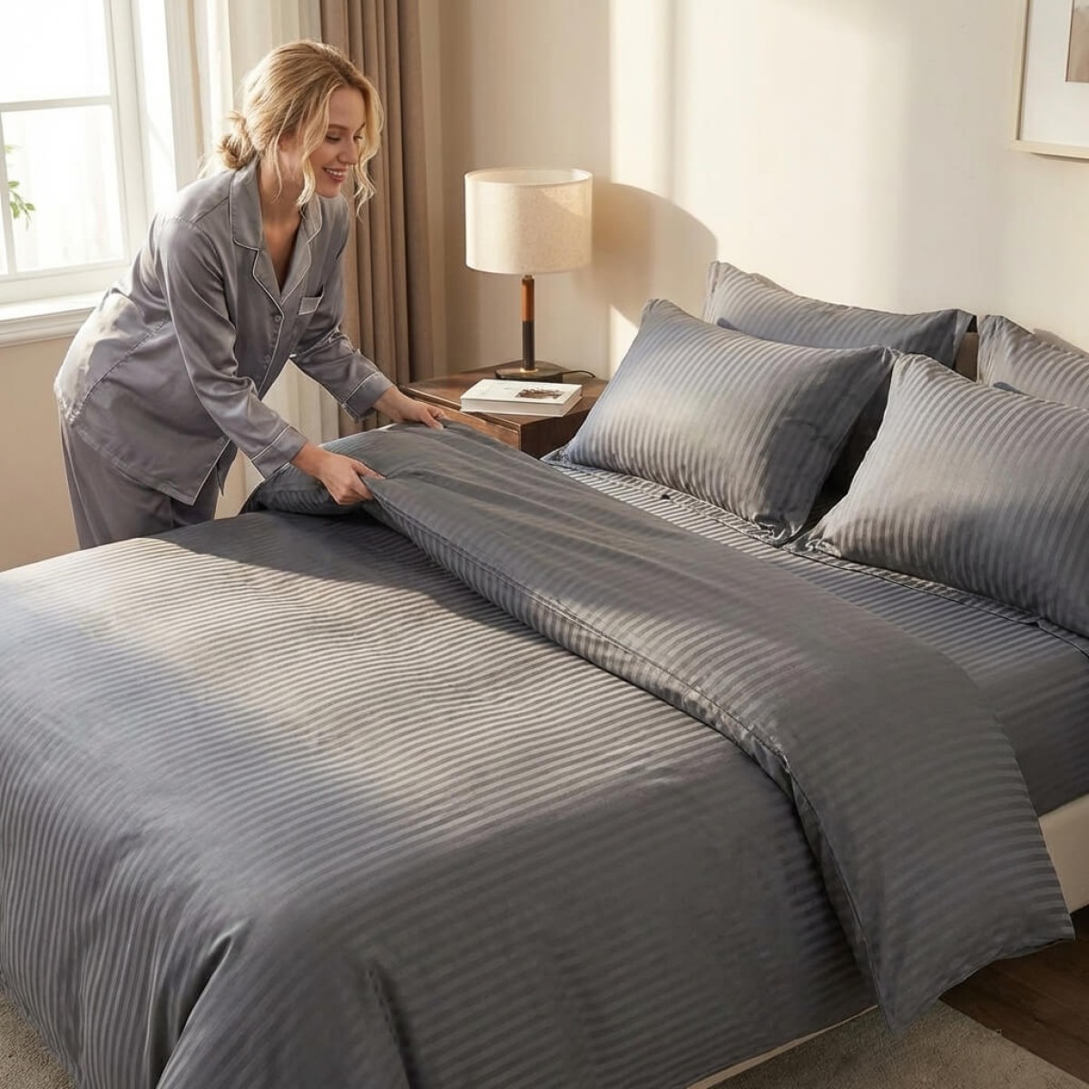 Създадена с внимание към детайла, тази материя предлага луксозно усещане и невероятна издръжливост. Тя осигурява мекота и комфорт при допир, като същевременно остава устойчива на интензивна употреба. Благодарение на модерните техники на изработка, чаршафите не губят форма, свежест и цвят дори след стотици пранета, а усещането върху кожата остава деликатно и приятно.