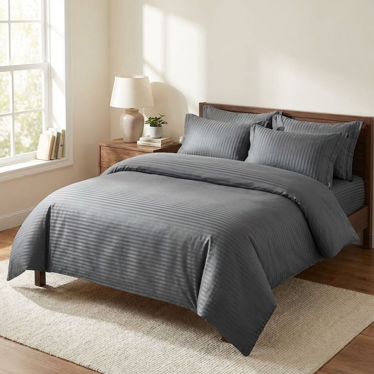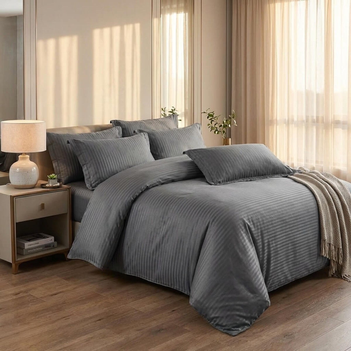 Спален комплект чаршафи от 6 части с ластик - Дамаска - Графит