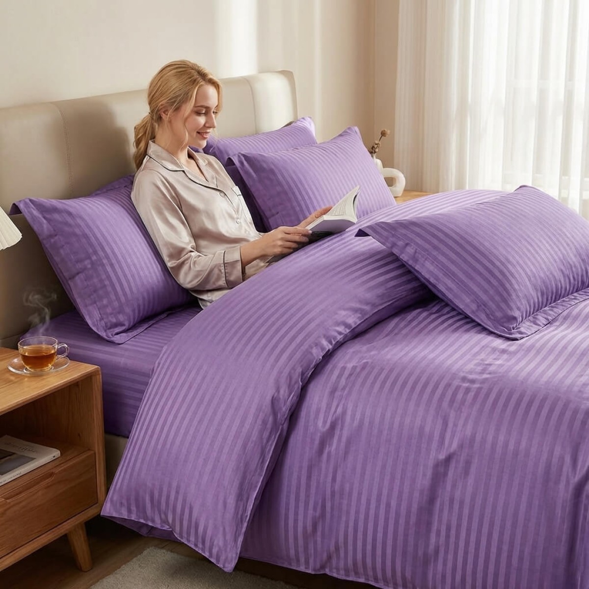 Създадена с внимание към детайла, тази материя предлага луксозно усещане и невероятна издръжливост. Тя осигурява мекота и комфорт при допир, като същевременно остава устойчива на интензивна употреба. Благодарение на модерните техники на изработка, чаршафите не губят форма, свежест и цвят дори след стотици пранета, а усещането върху кожата остава деликатно и приятно.