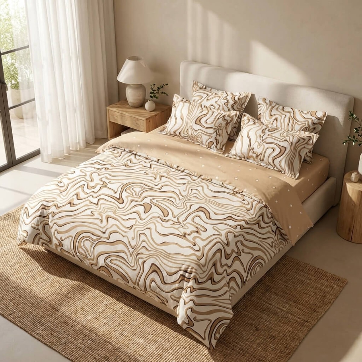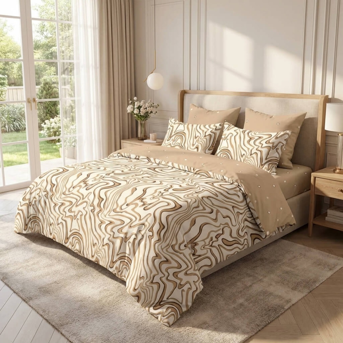 Създадена с внимание към детайла, тази материя предлага луксозно усещане и невероятна издръжливост. Тя осигурява мекота и комфорт при допир, като същевременно остава устойчива на интензивна употреба. Благодарение на модерните техники на изработка, чаршафите не губят форма, свежест и цвят дори след стотици пранета, а усещането върху кожата остава деликатно и приятно.