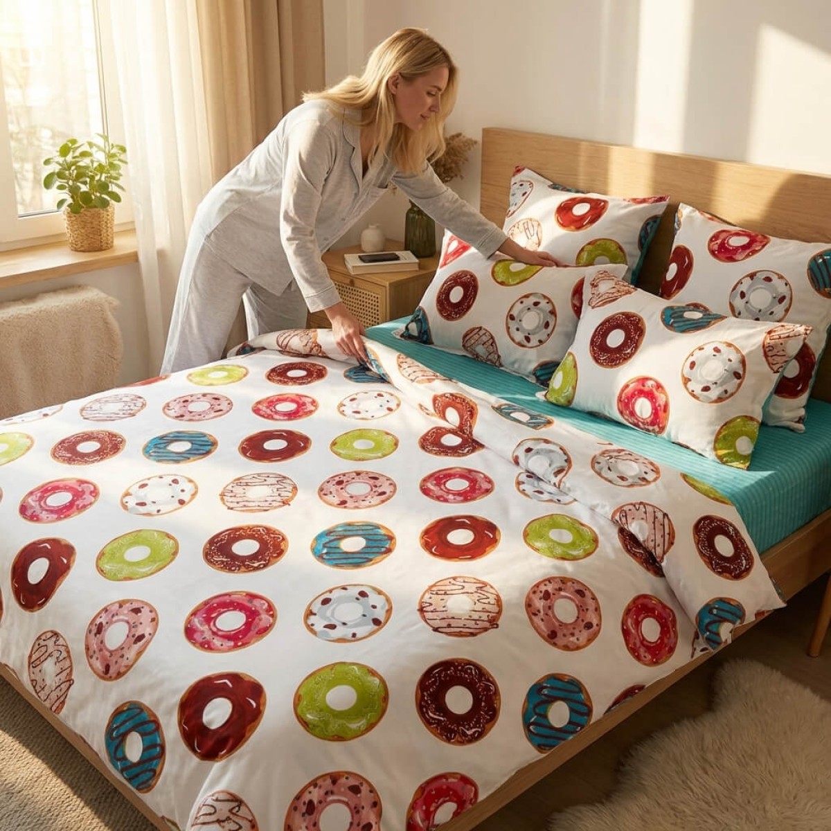 Създадена с внимание към детайла, тази материя предлага луксозно усещане и невероятна издръжливост. Тя осигурява мекота и комфорт при допир, като същевременно остава устойчива на интензивна употреба. Благодарение на модерните техники на изработка, чаршафите не губят форма, свежест и цвят дори след стотици пранета, а усещането върху кожата остава деликатно и приятно.