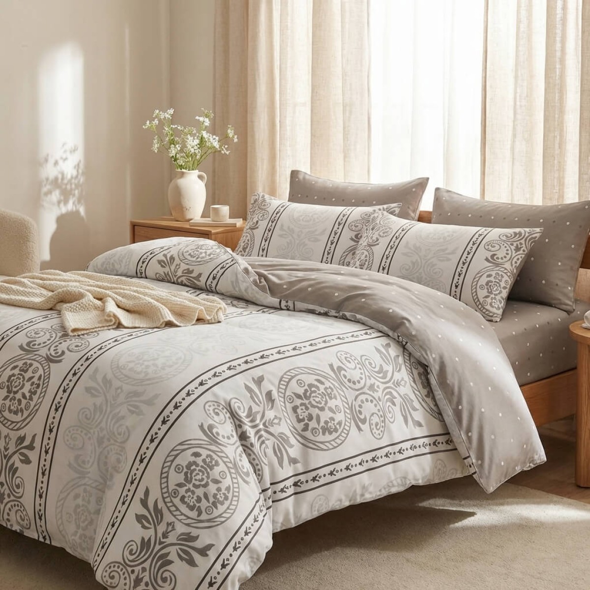 Създадена с внимание към детайла, тази материя предлага луксозно усещане и невероятна издръжливост. Тя осигурява мекота и комфорт при допир, като същевременно остава устойчива на интензивна употреба. Благодарение на модерните техники на изработка, чаршафите не губят форма, свежест и цвят дори след стотици пранета, а усещането върху кожата остава деликатно и приятно.
