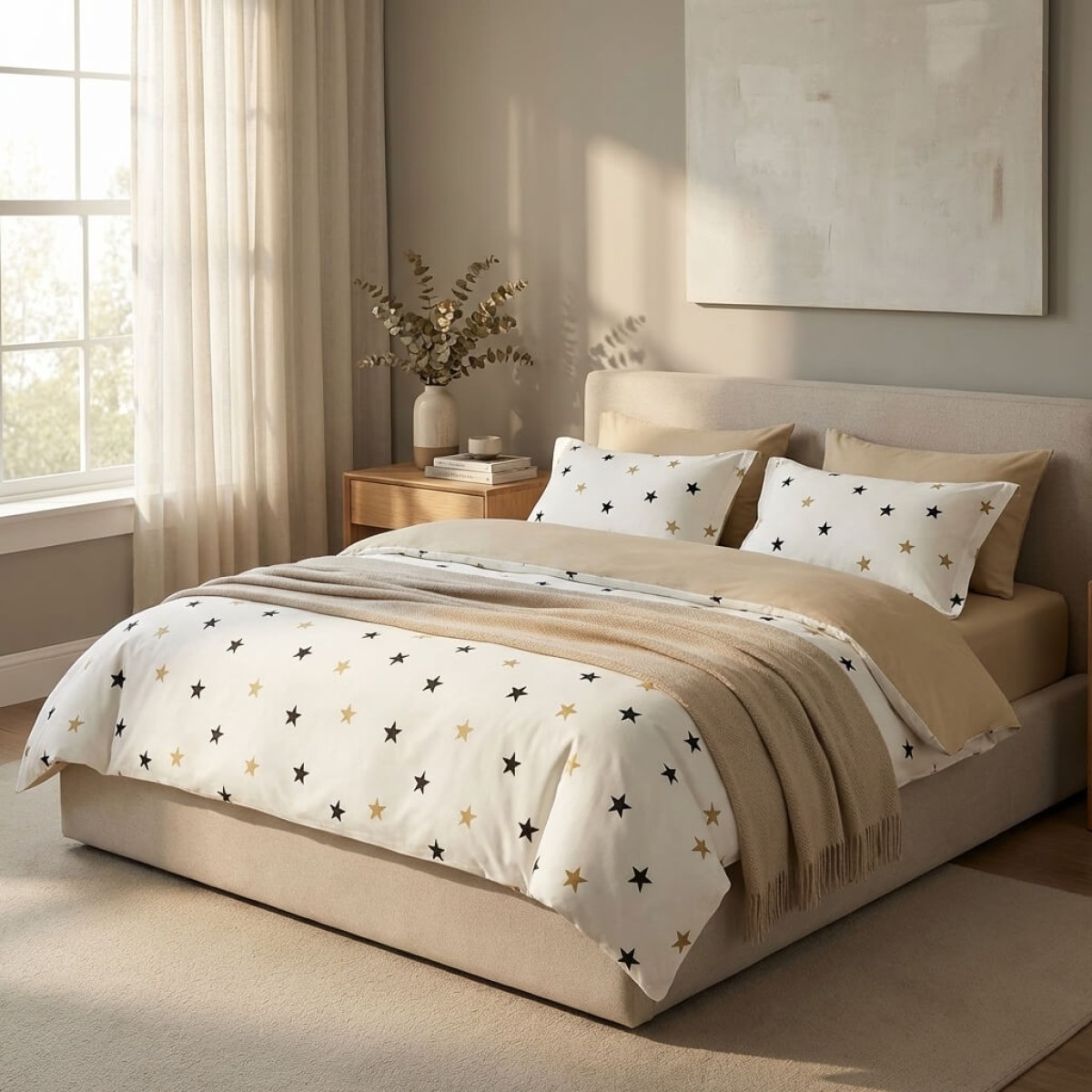 Създадена с внимание към детайла, тази материя предлага луксозно усещане и невероятна издръжливост. Тя осигурява мекота и комфорт при допир, като същевременно остава устойчива на интензивна употреба. Благодарение на модерните техники на изработка, чаршафите не губят форма, свежест и цвят дори след стотици пранета, а усещането върху кожата остава деликатно и приятно.