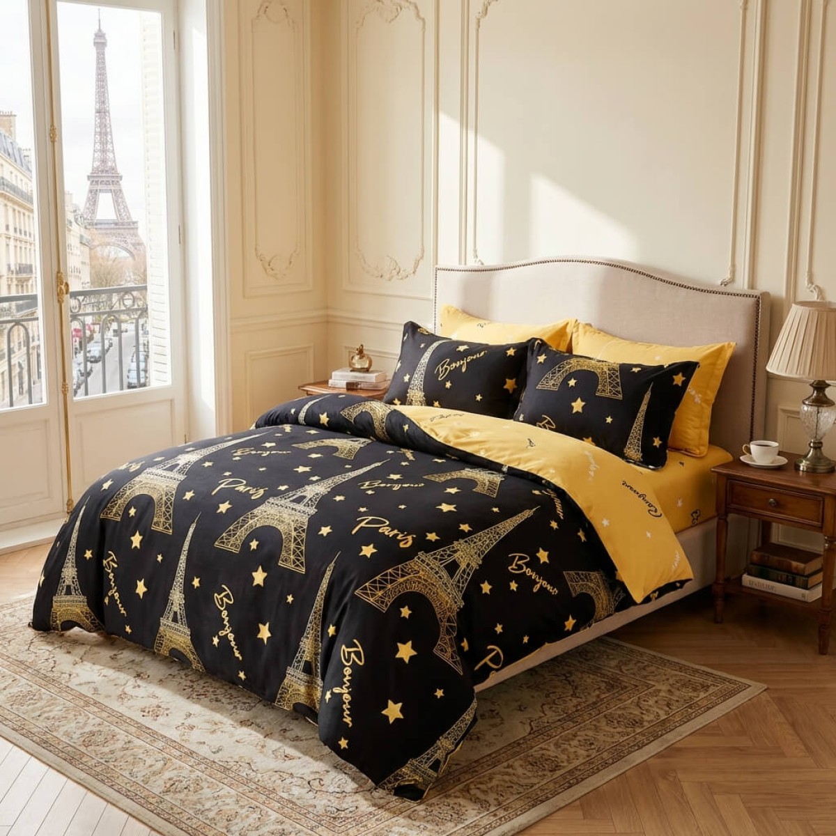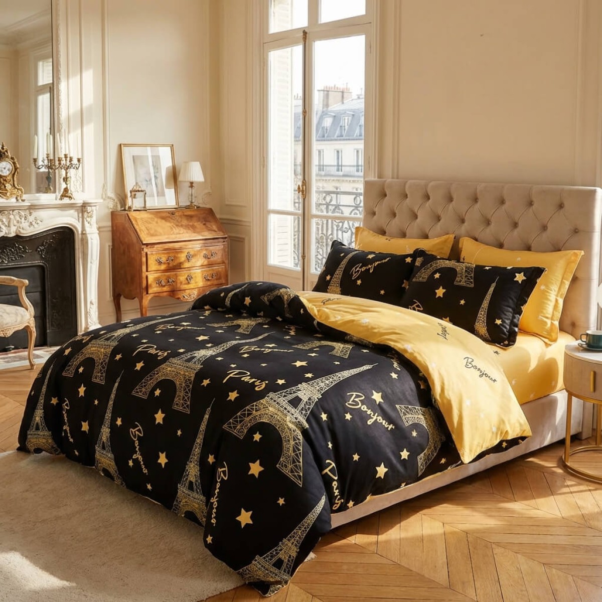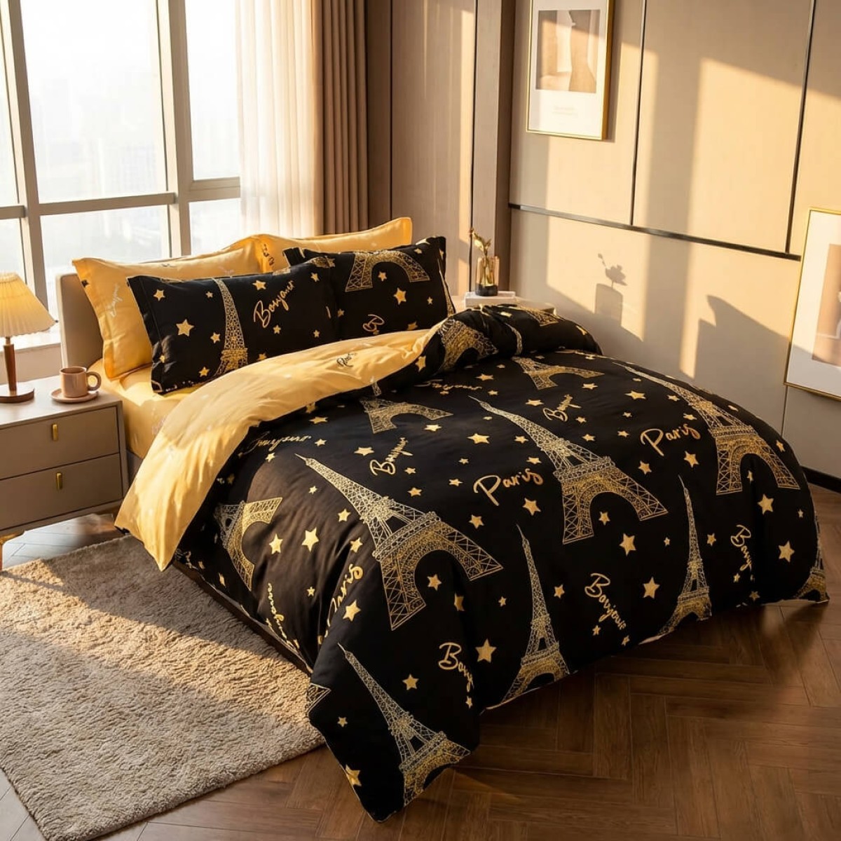 Спален комплект чаршафи от 6 части, Парижка нощ