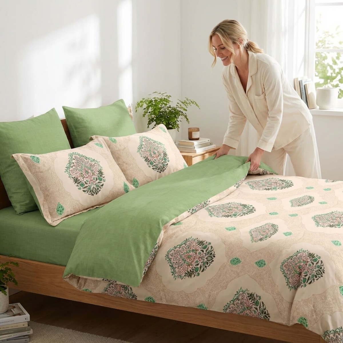 Създадена с внимание към детайла, тази материя предлага луксозно усещане и невероятна издръжливост. Тя осигурява мекота и комфорт при допир, като същевременно остава устойчива на интензивна употреба. Благодарение на модерните техники на изработка, чаршафите не губят форма, свежест и цвят дори след стотици пранета, а усещането върху кожата остава деликатно и приятно.