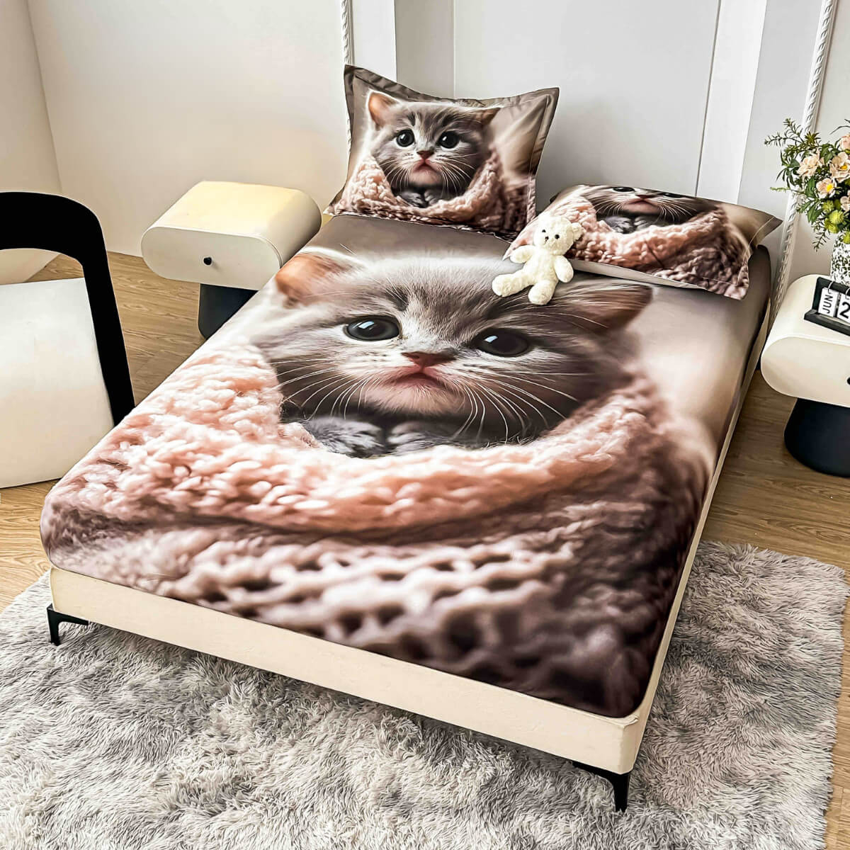 Спален комплект чаршафи с ластик от 3 части, Коти