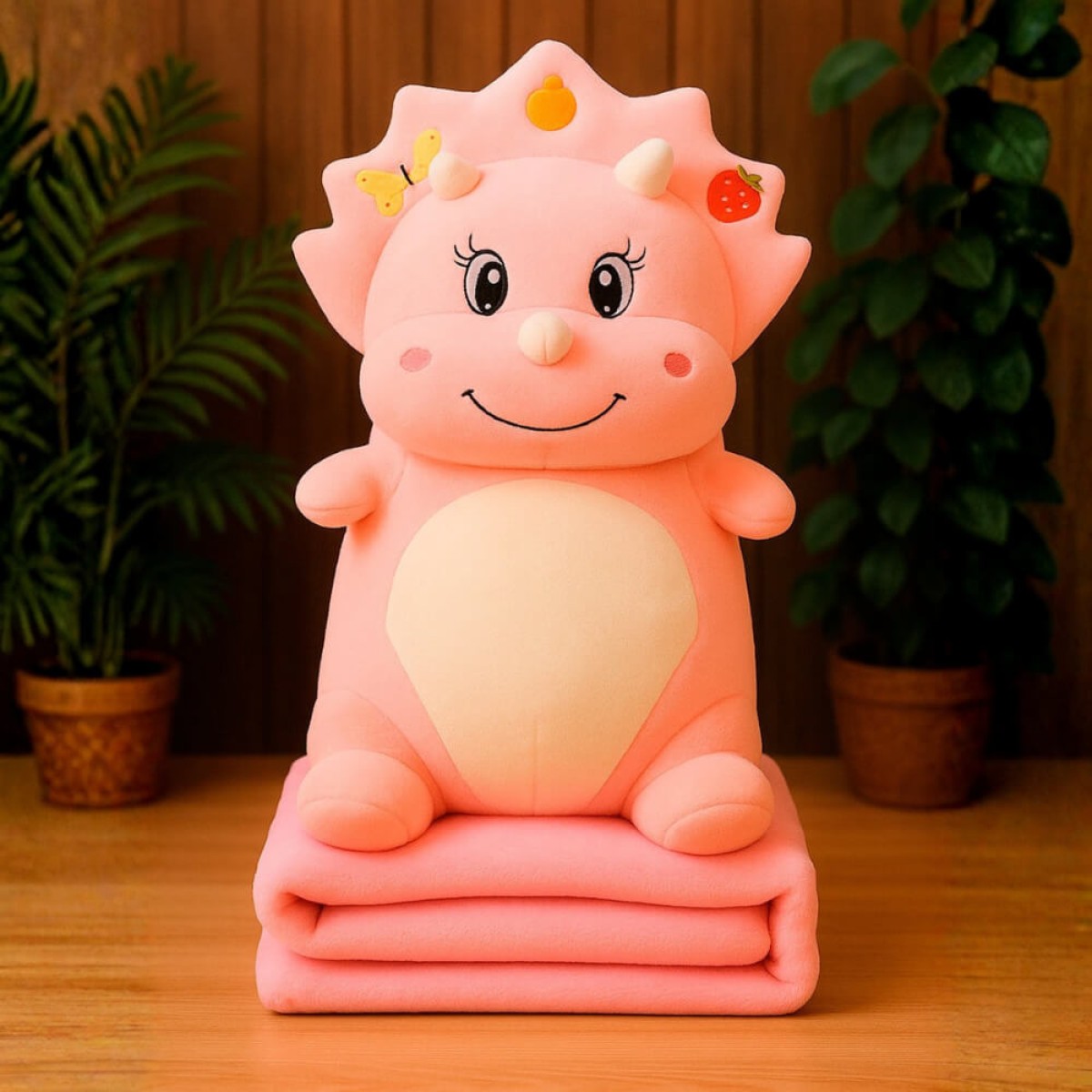 Плюшено одеяло играчка с размер 100x170, Дино - Розово