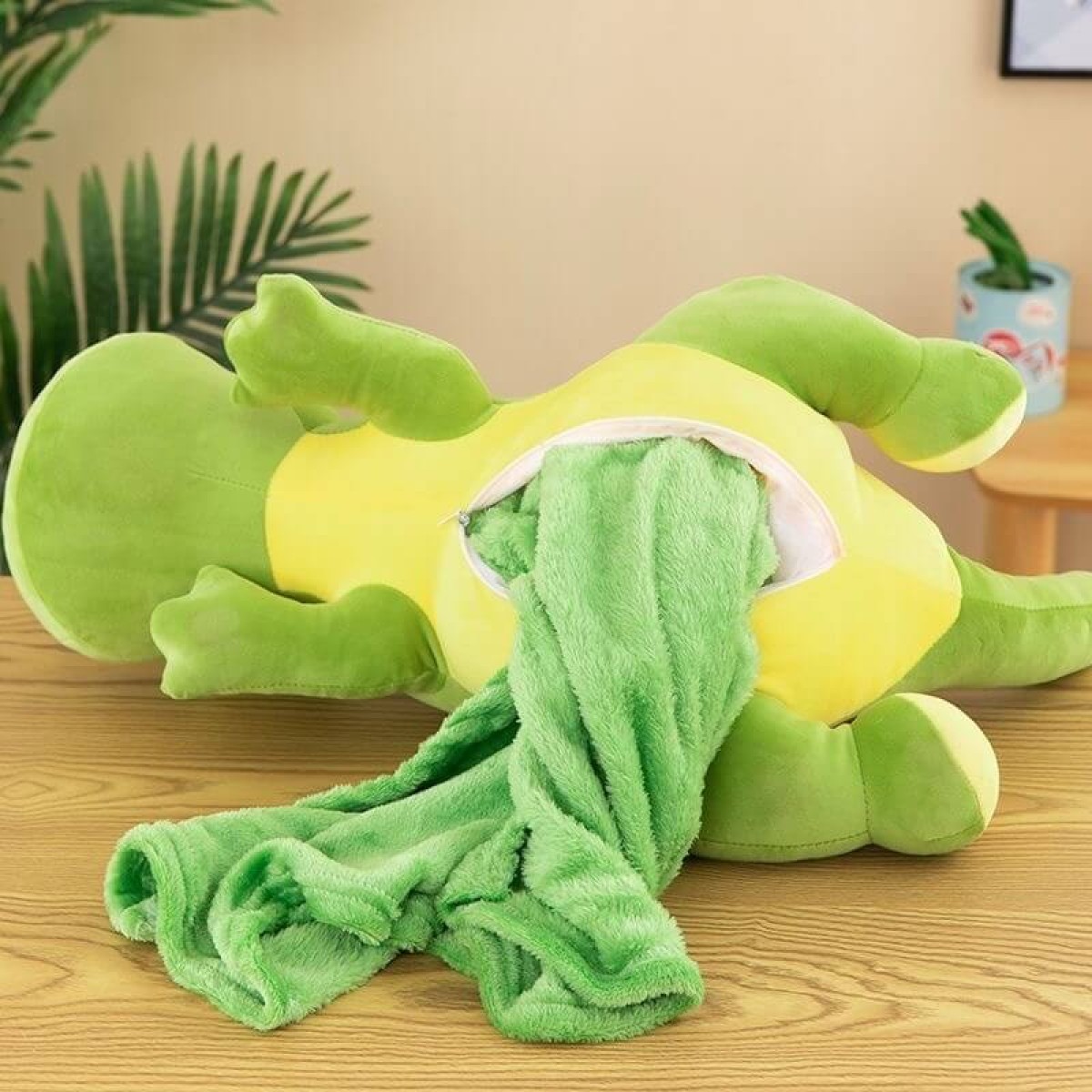 ✅ Забавна и функционална: Лесно се разкопчава с цип, за да се превърне от плюшена играчка в топло одеяло с размер 100х160 см – идеално за уют през студените нощи или за приключения на открито.