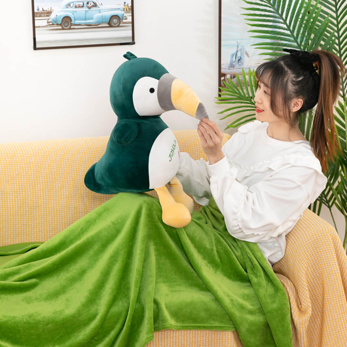 Плюшено одеяло играчка с размер 100x170, Папагал - зелен