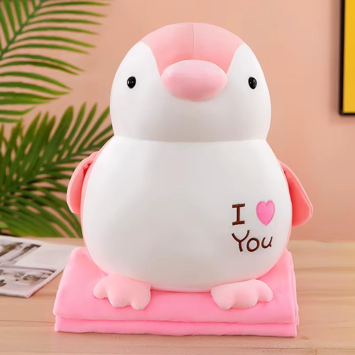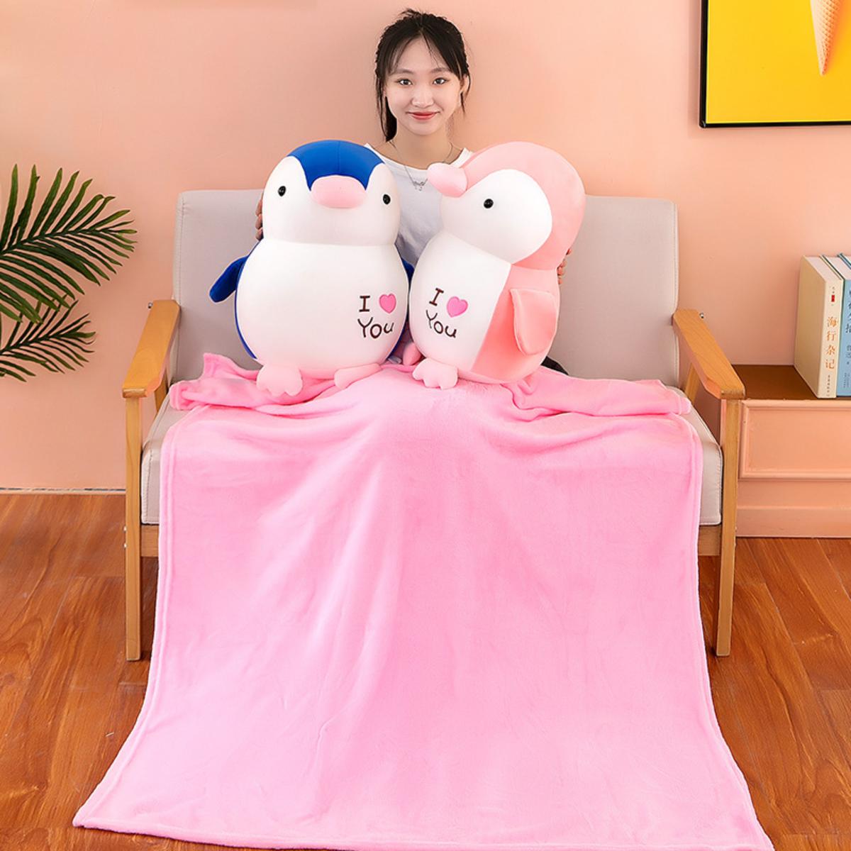 Плюшено одеяло играчка с размер 100x170, Пингвин - розов