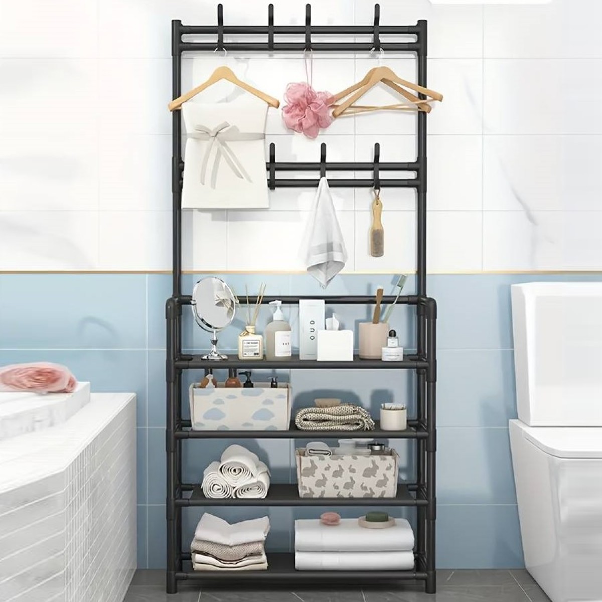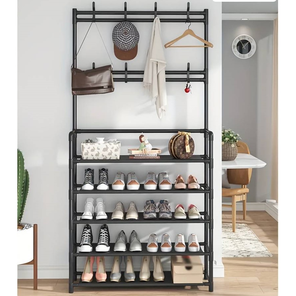 Етажерка за дрехи и обувки - практично решение за всеки дом. Удобният стелаж ще Ви спести много място и ще можете лесно и удобно да подредите вашите дрехи и обувки. Подходящ е както за поставяне в коридора, така и за други части от дома. Висококачествената конструкция гарантира максимална здравина и издръжливост. Можете да я поставите в антрето и да подредите всичките си обувки на нея. Изключително стилен и елегантен дизайн.